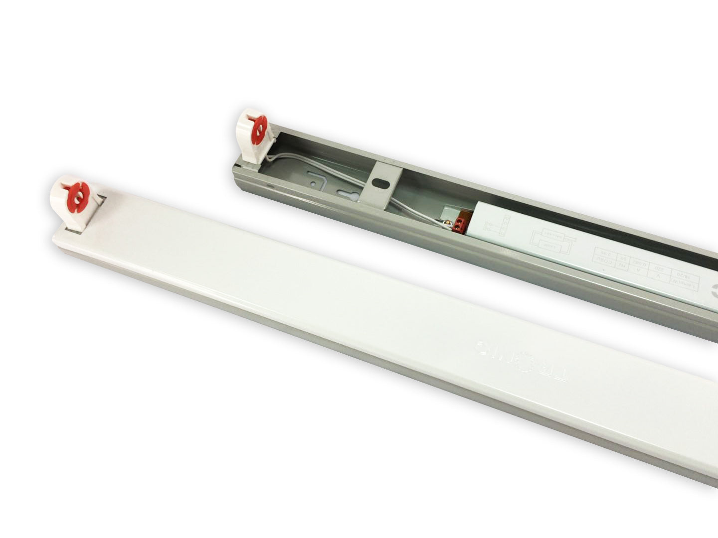 This 2 feet fitting for a fluorescent tube has an electronic choke, but it lacks a starter because it is not necessary. If you want to use it with an LED tube, you should take out the electronic ballast and connect the electricity directly to the two terminals.