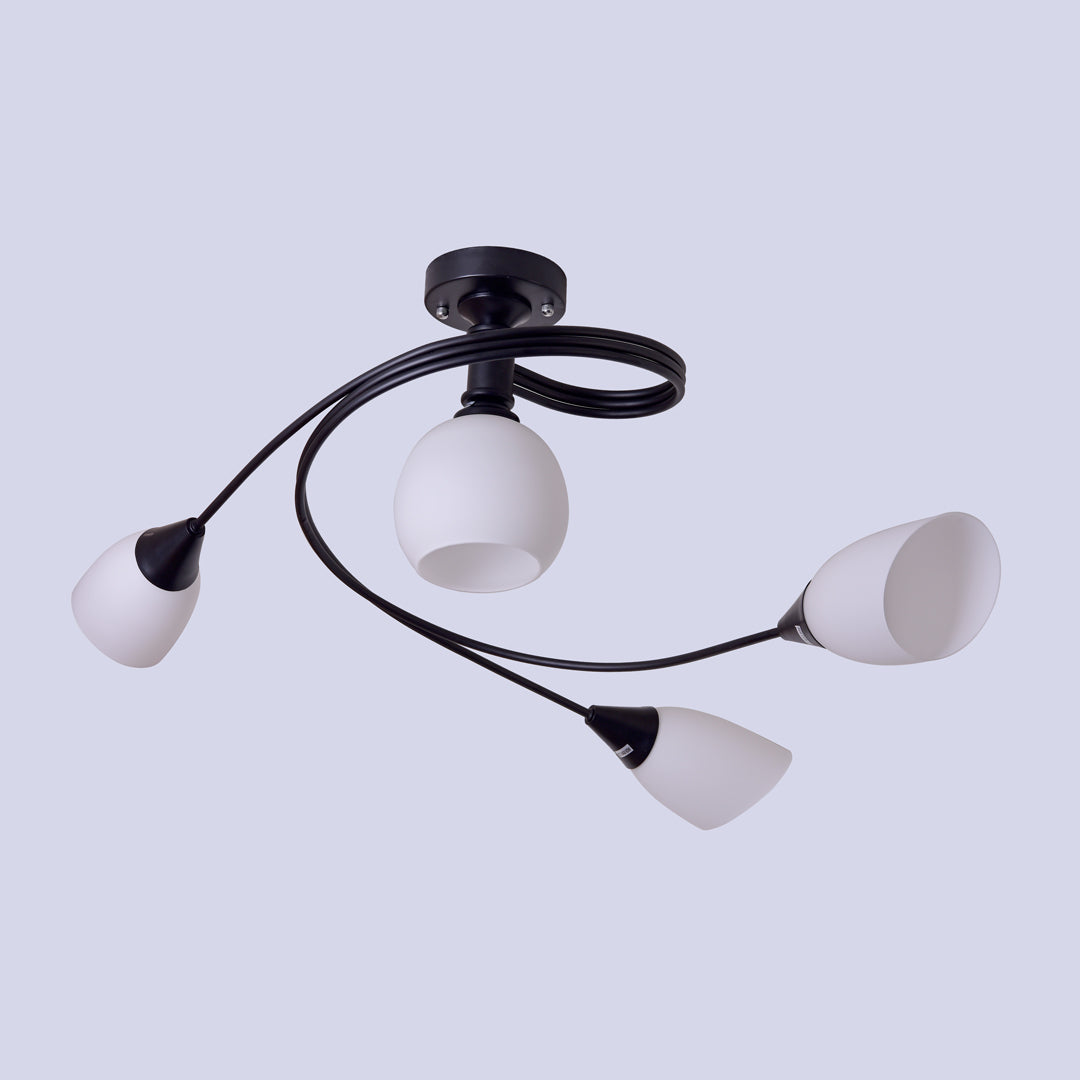 Our 4 light ceiling set, which will match with any décor style, adds a stylish and effective lighting impact to any area. It is made of high-quality materials and has a metal casing with 4 tulip-shaped white glass globes.