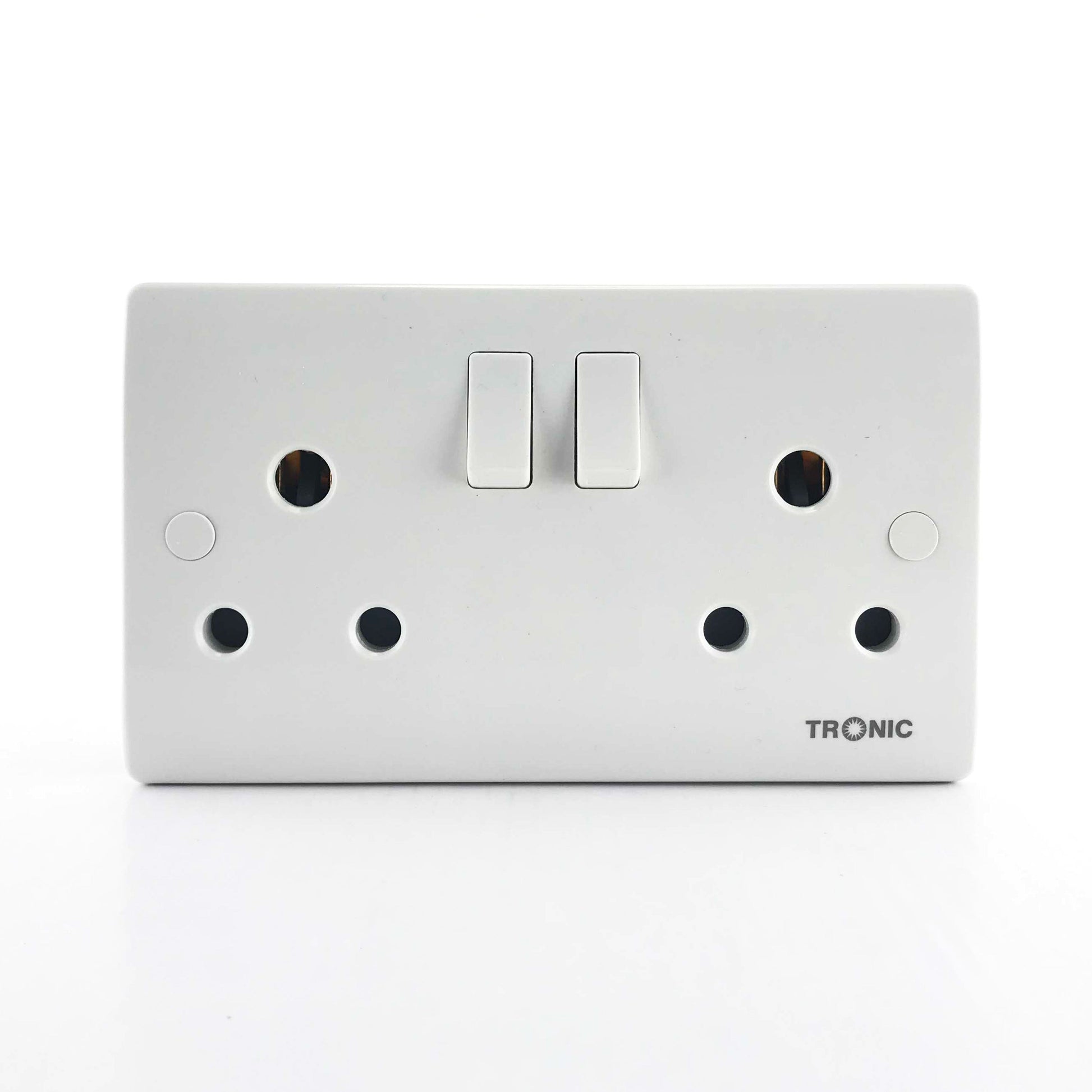 This white standard-range Tronic 15A single socket has rounded edges and a glossy finish to complement any contemporary home or workplace decor. Standard plugs for the majority of lamps and small appliances can fit in 15A outlets. A 15 amp plug and socket differs from a 13 amp plug and socket in that it has different-shaped pins and can support a greater load than a 13A outlet.