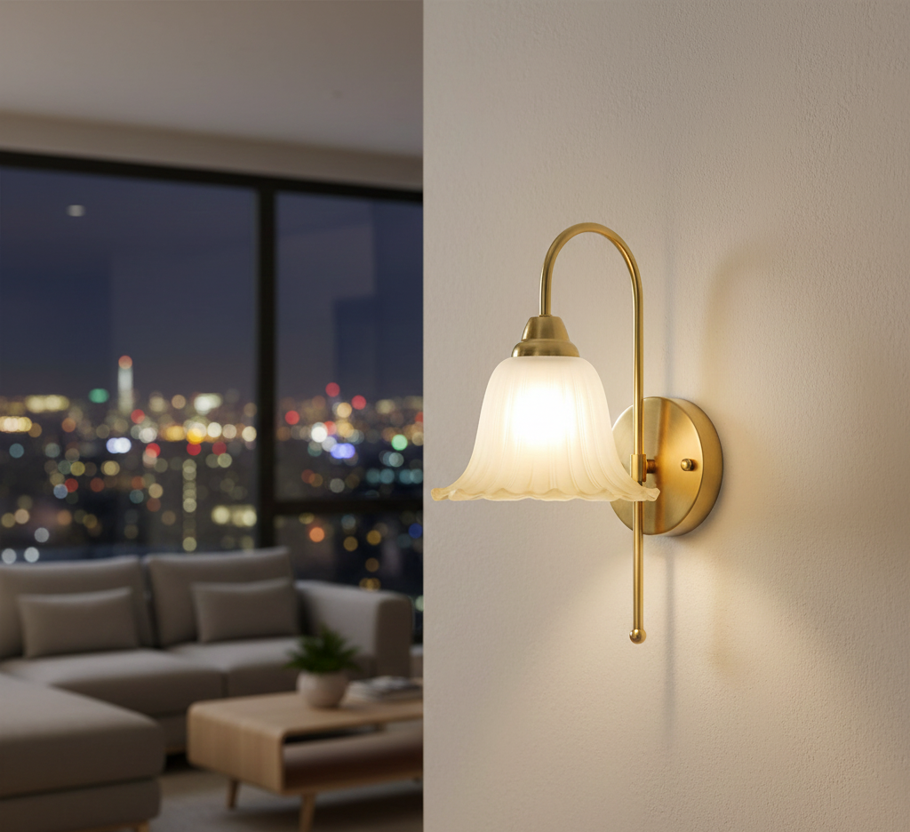 Bring elegance and vintage charm to your space with the Vintage Flared Skirt Glass Wall Lamp. Designed with a gracefully curved golden arm and a unique bell skirt-shaped frosted glass shade, this fixture delivers soft ambient lighting while enhancing your décor. The base of the glass gently fades into a warm golden tint, giving it a distinct and luxurious appearance. Whether you’re illuminating a hallway, bedroom, living area, or café, this lamp creates a warm and welcoming atmosphere. It’s easy to install, highly durable, and compatible with standard E27 bulbs, making it both beautiful and practical. A perfect blend of traditional design and functional lighting for modern interiors.