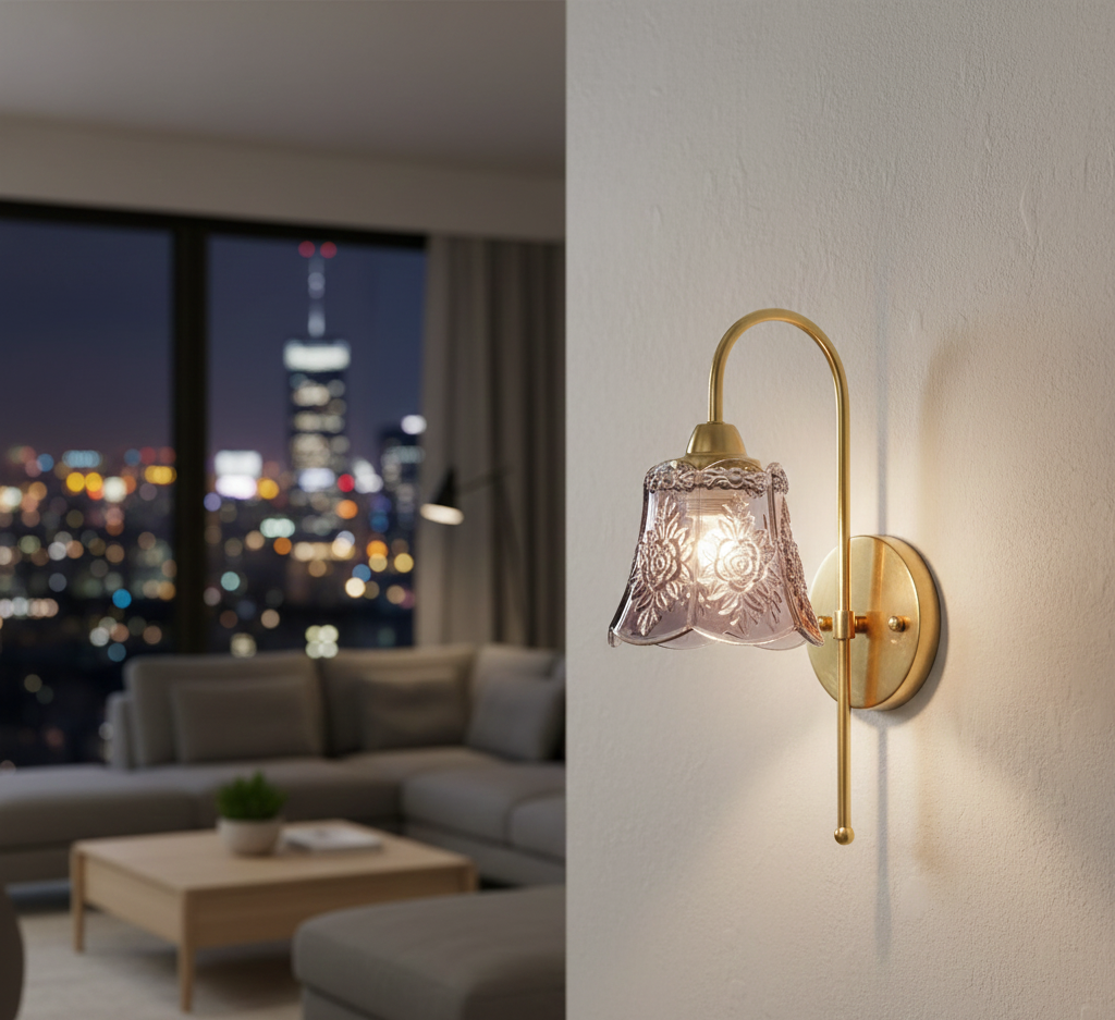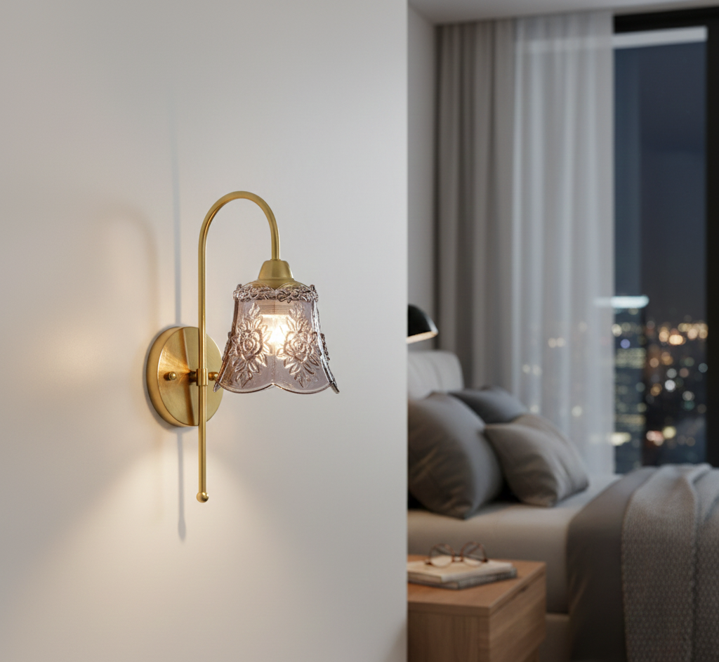 This beautifully crafted antique floral embossed glass wall bracket light features an intricately designed floral-patterned glass shade with a soft, vintage flair. Paired with a smooth, curved, brass-finished arm and round wall plate, the light creates a warm, romantic ambiance that suits bedrooms, hallways, reading corners, and classical-themed interiors. The elegant scalloped edge and delicate detailing on the glass give it a timeless appeal — perfect for anyone looking to add charm and character to their space.